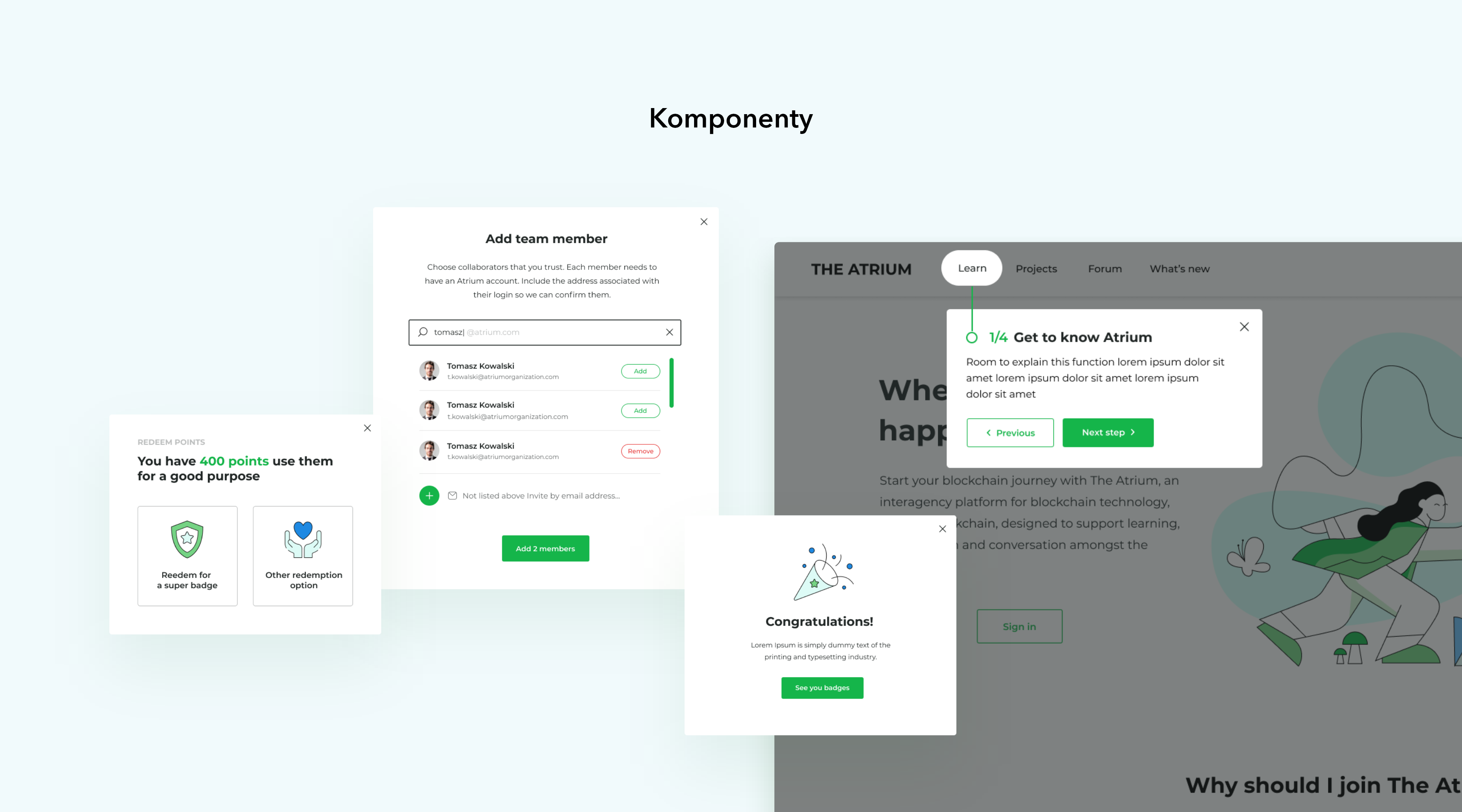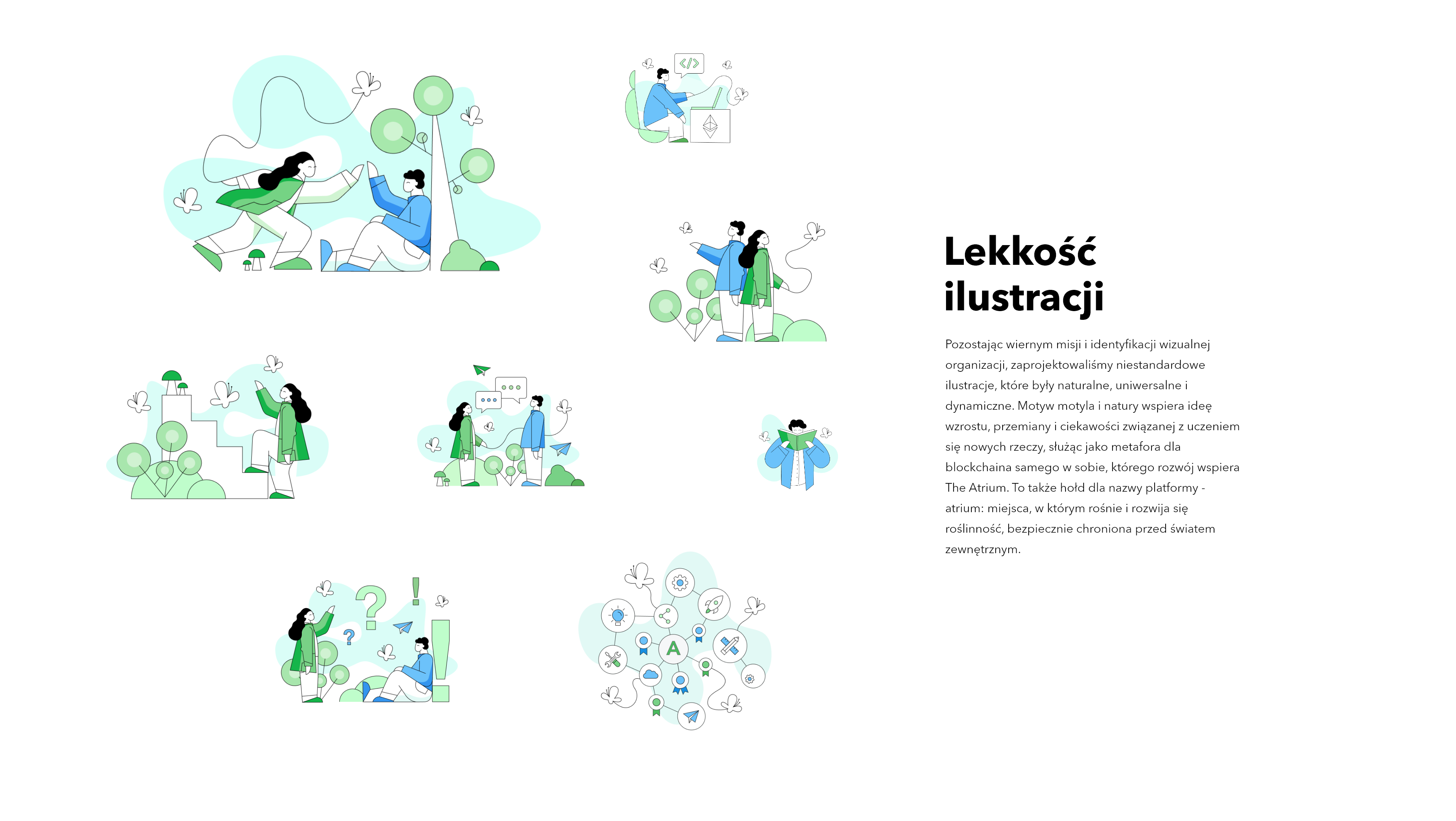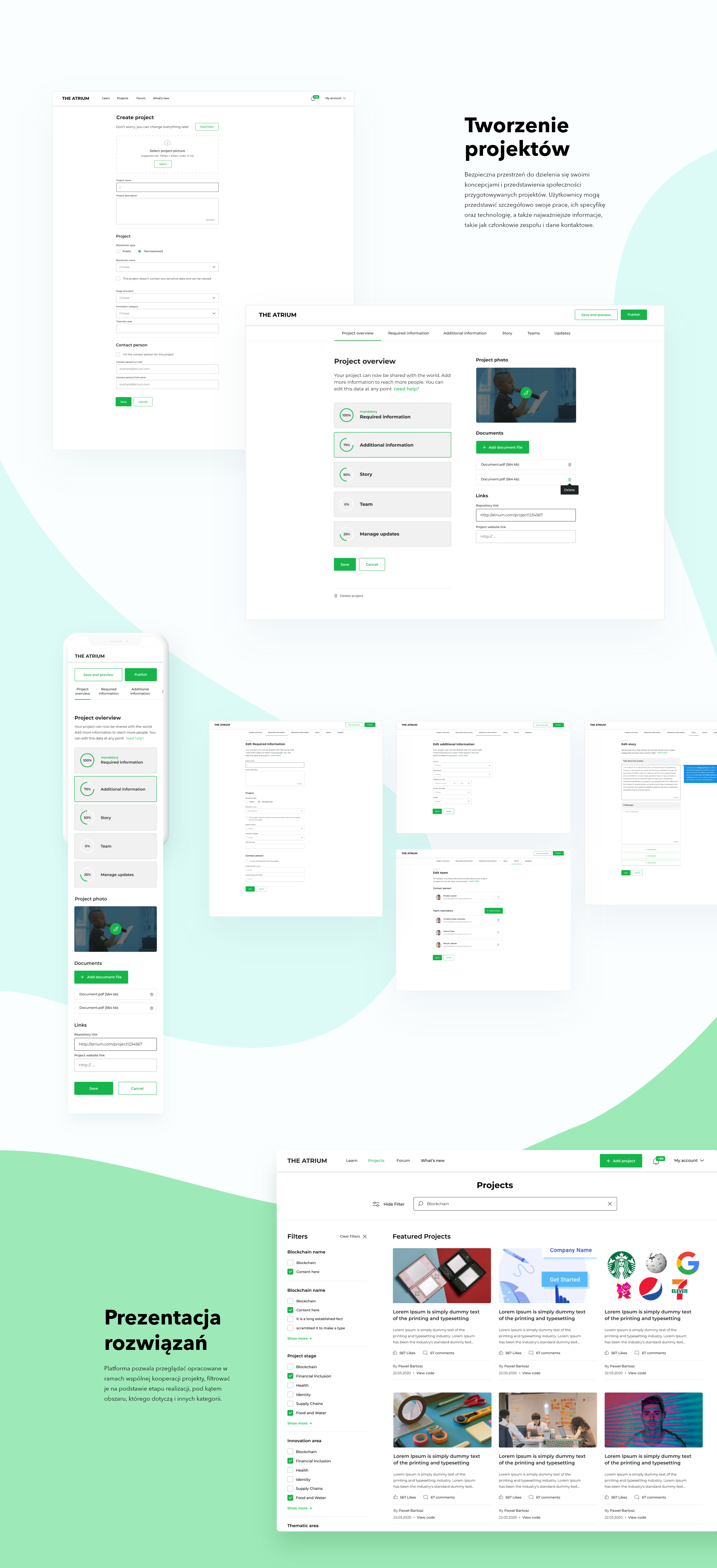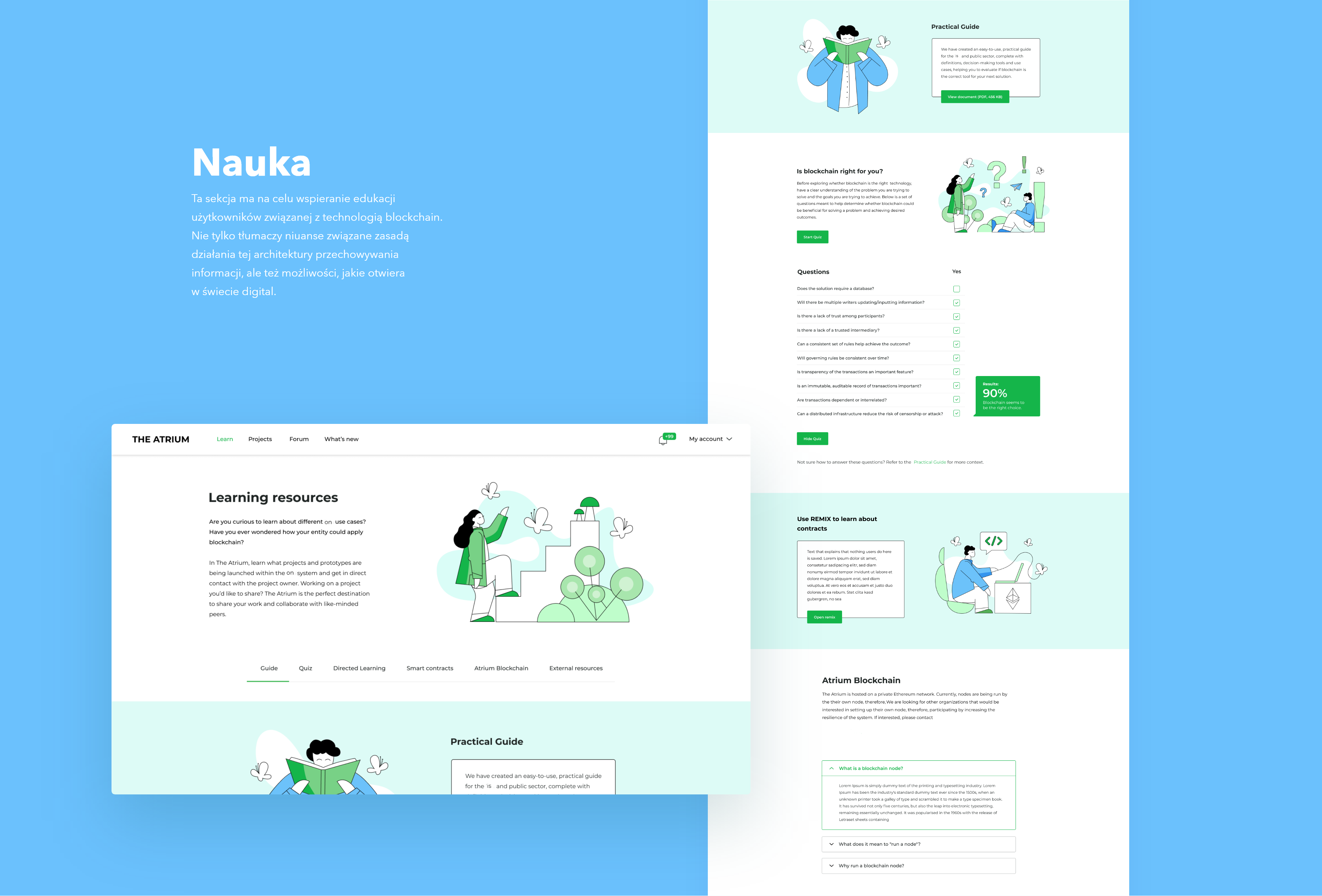 Dzięki trzem kluczowym cechom platformy (nauka, projektowanie, forum) wyróżniliśmy cele platformy i ułatwiliśmy użytkownikom poruszanie się po systemie oraz wcielanie w życie ich oryginalnych pomysłów związanych z blockchain. The Atrium to miejsce, w którym każdy członek organizacji może swobodnie pogłębiać swoją wiedzę na ten temat i dzięki temu zmieniać świat.