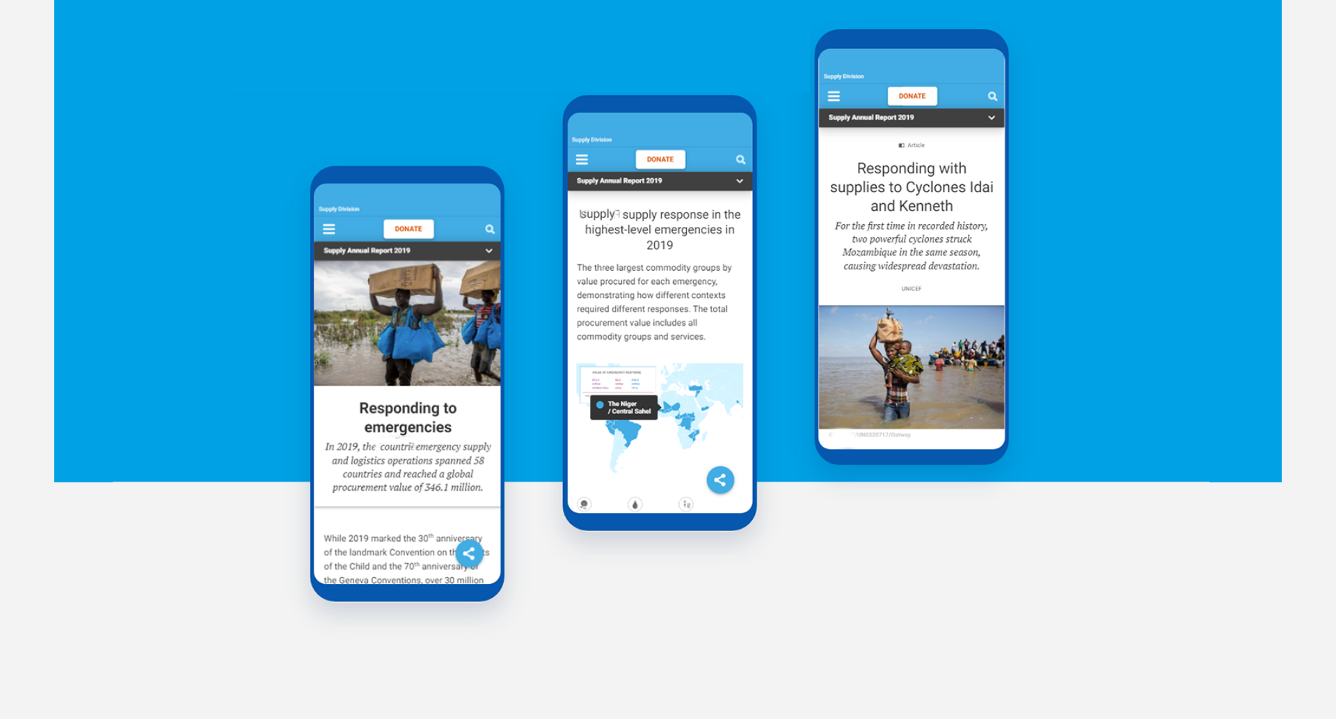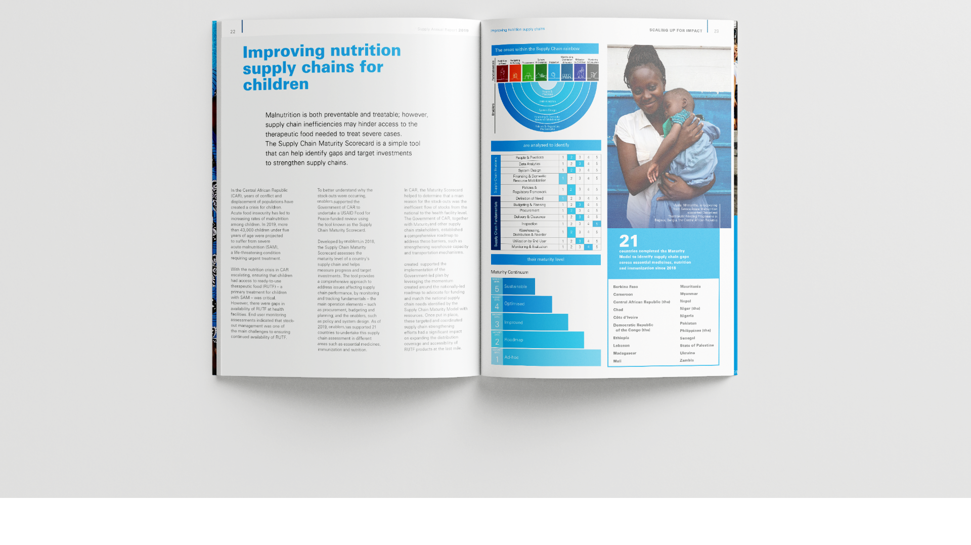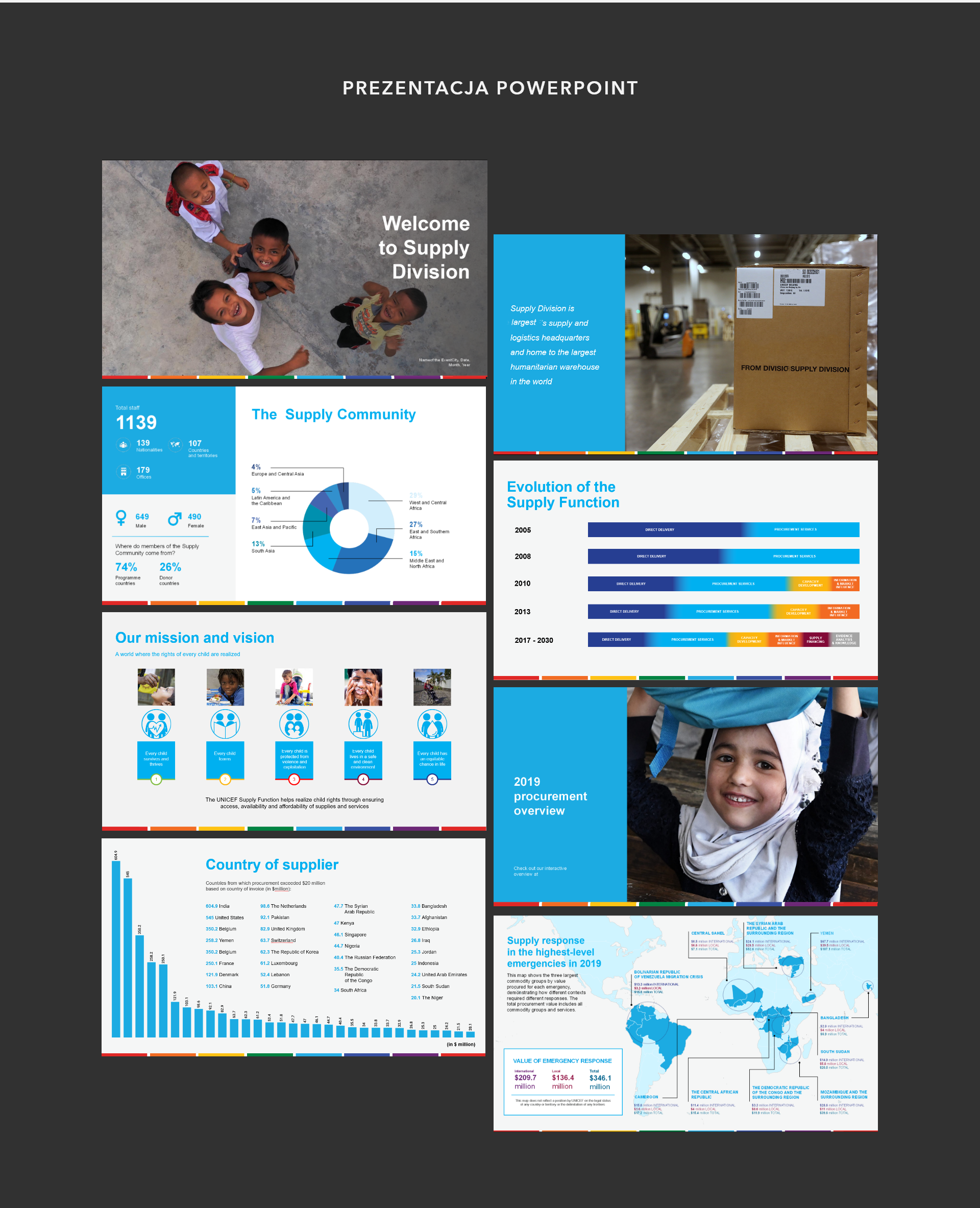 Roczny Raport Zaopatrzenia to jedna z najważniejszych corocznych publikacji dla naszego klienta, podsumowująca działalność całej Organizacji w minionym roku. Ponieważ zawiera tak wiele informacji, wiedzieliśmy, że konieczne jest, żeby przedstawić tę ogromną ilość danych w prosty, przejrzysty, ale angażujący wizualnie sposób, aby były one wyraziste i łatwe do spożycia. Ponadto musieliśmy przygotować raport zarówno w formie drukowanej, jak i cyfrowej, a także stworzyć animacje, panele ścienne Tusand oraz broszurę opracowaną na podstawie informacji zawartych w raporcie. Musieliśmy zachować wizualną spójność całej marki, jak i projektu we wszystkich materiałach marketingowych, o stworzenie których zostaliśmy poproszeni, jednoczesnym zachowując możliwość dostosowania danych do odpowiedniego formatu.