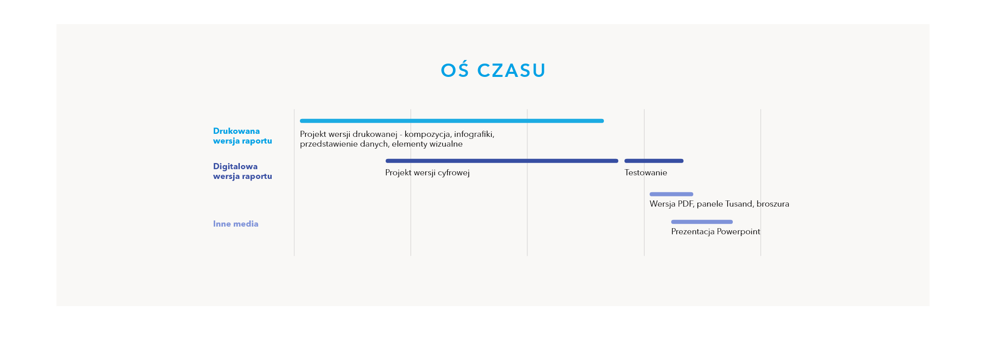 Musieliśmy wdrożyć naszego partnera do naszego systemu recenzji online, aby zapewnić proces akceptowania projektu, ponieważ było wielu interesariuszy, którzy musieli walidować i oceniać kolejne części raportu. Ponieważ organizacja jest niewiarygodnie duża i działa w wielu częściach świata, zdecydowaliśmy się użyć Ziflow – zaawansowanego narzędzia do sprawdzania online, które umożliwia recenzowanie i współpracę przy złożonych projektach kreatywnych. Ponadto przedstawiciele Organizacji mieli dostęp do projektu na Teamwork – wykorzystywanej przez nas platformie do zarządzania projektami, gdzie mogli udzielić dodatkowych sugestii i komentować bieżące prace.