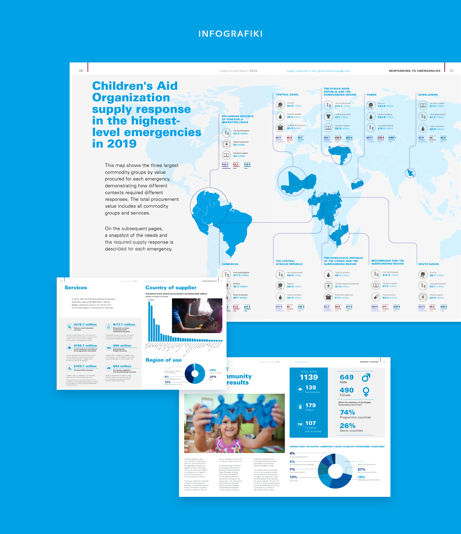 Projekt drukowanej i cyfrowej wersji Raportu Rocznego Dostaw, animacji i innych materiałów marketingowych dla wiodącej Globalnej Organizacji Pomocy Dzieciom