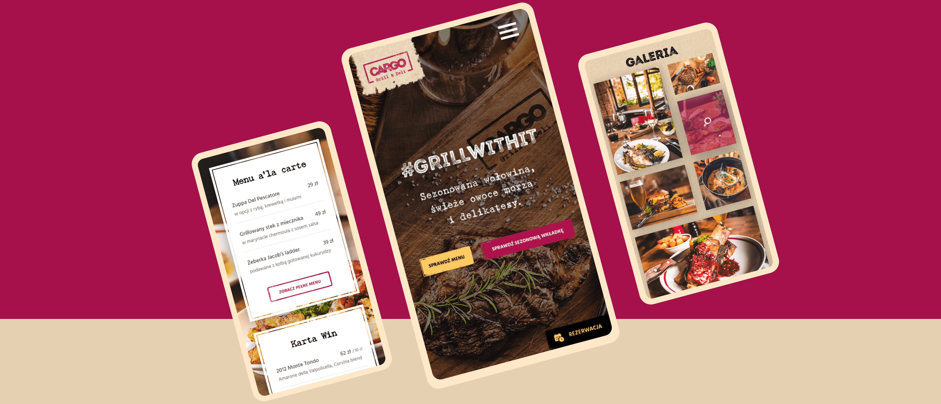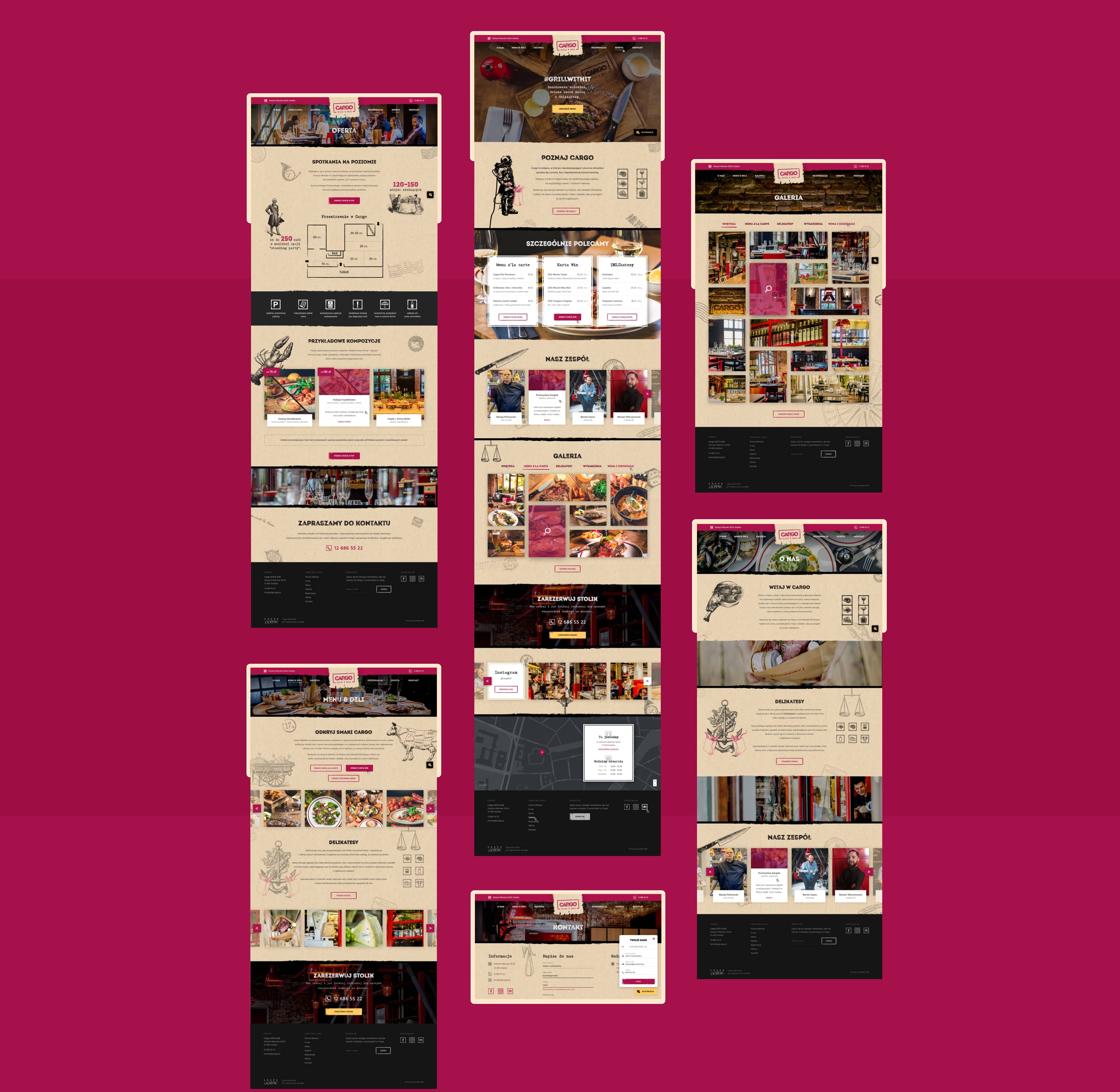 Cargo to miejsce, w którym niezobowiązująca i ustronna atmosfera spotyka się z prostą, lecz nie pozbawioną kunsztu kuchnią. Sezonowana na sucho, polska wołowina, świeże ryby i owoce morza przyjeżdżające tu z największych targów Europy. Lokal oferuje także rozbudowaną selekcję win. Wykonana przez nas strona internetowa została zaprojektowana w stylu, który kojarzy się z kuchnią, której smaki możemy spożywać w tym miejscu. Odwzorowuje charakter restauracji, jest dobrym przewodnikiem po jej ofercie.