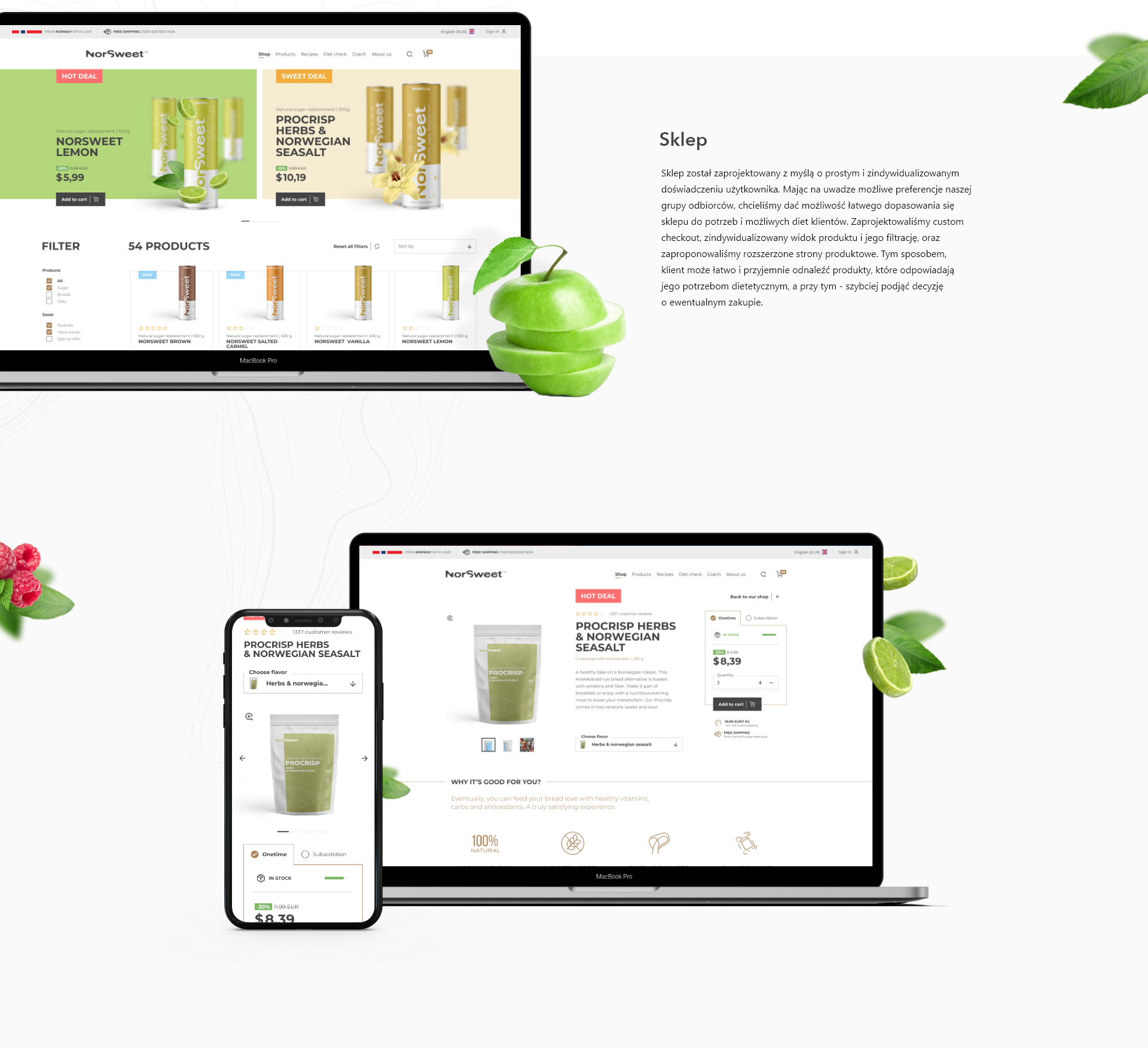 Stworzyliśmy ton i głos unikalne dla NorSweet, które nie tylko brzmią autentycznie i naturalne, ale także są angażujące i edukacyjne. Zebraliśmy zespół wspaniałych copywriterów i wdrożyliśmy nasz koncept krok po kroku – od tekstów produktowych i sprzedażowych, poprzez stronę internetową oraz materiały drukowane (m.in. ulotki, katalogi, broszury), po elementy współpracy z influencerami, reklamy i treści w mediach społecznościowych.