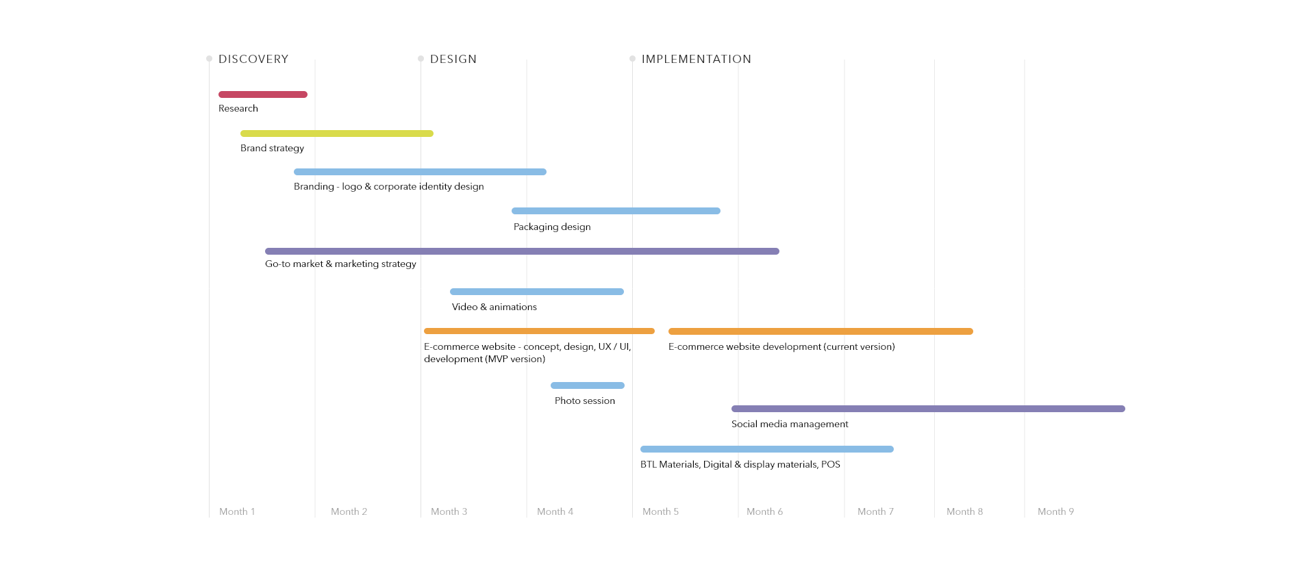 Po uzgodnieniu zakresu projektu, mogliśmy rozpocząć pracę. Pierwszym krokiem były warsztaty strategiczne z klientem, podczas których udało nam się lepiej zrozumieć ideę stojącą za marką, cechy szczególne produktów, dokonaliśmy wstępnej segmentacji grup docelowych, oraz szczegółowo omówiliśmy wyróżniki marki. Pomogło nam to w diagnozowaniu problemów i przewidzeniu wyzwań, pozwalając na sprawne zarządzanie ryzykiem projektowym i dokładnym zaplanowaniu komunikacji.