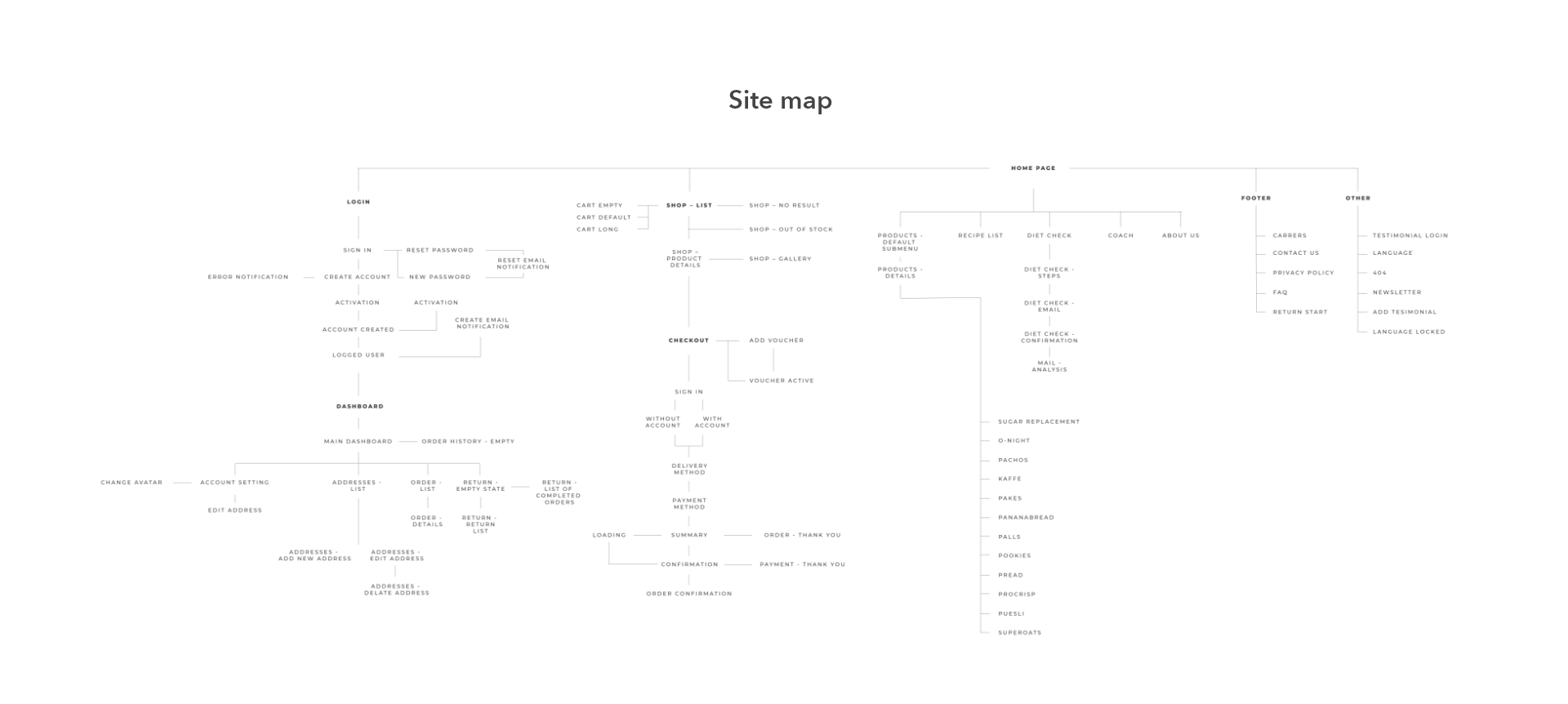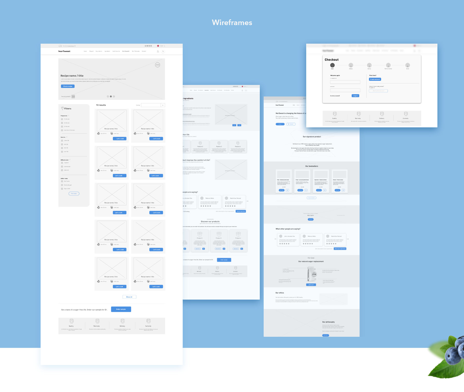 Klient chciał jak najszybciej rozpocząć sprzedaż, dlatego praca nad stroną internetową została podzielona na część MVP oraz późniejsze iteracje. Na początku, skupiliśmy się tworzeniu strategii UX i tzw. map przepływu (czyli flow maps), aby następnie przejść do projektowania makiet, aby nie zapomnieć o wszelkich ważnych funkcjach dla użytkowników (na podstawie strategii marki, warsztatów, oraz wywiadów z użytkownikami). Skoncentrowaliśmy się na punktach kontaktowych użytkownika z witryną, ustaliliśmy role i skupiliśmy się na tworzeniu pozytywnego doświadczeniu klientów NorSweeta.