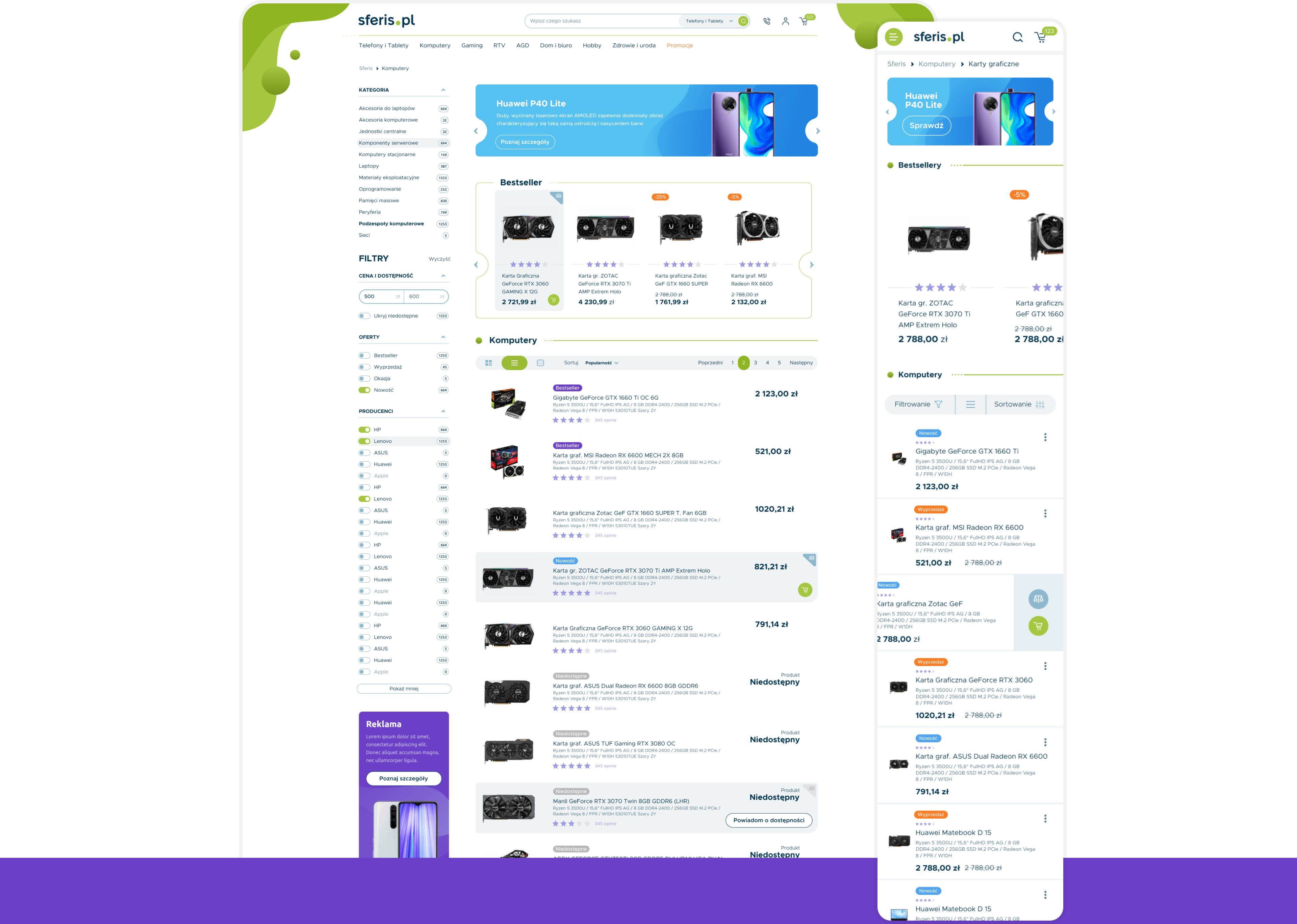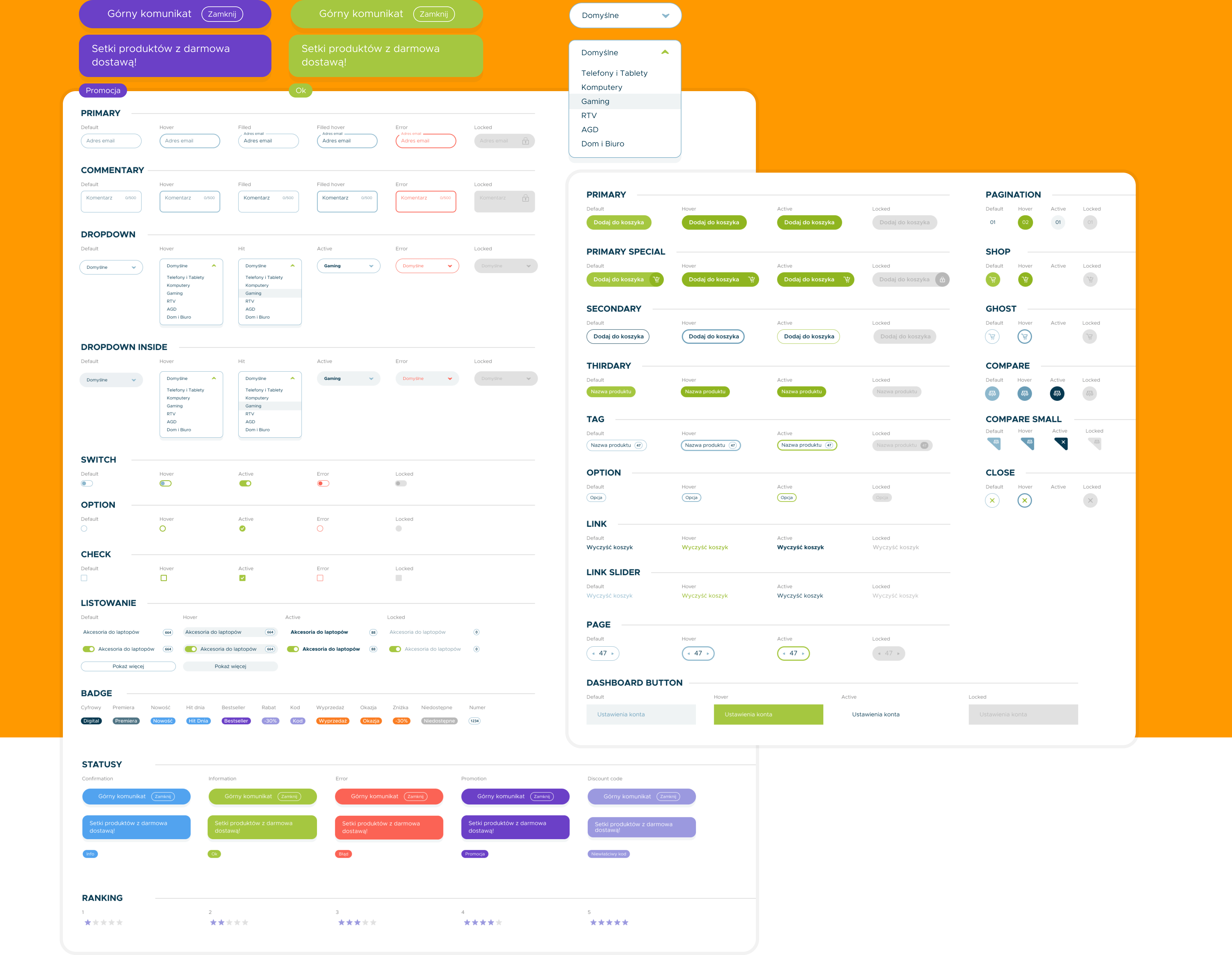 Nowy sklep Sferis.pl opiera się na stworzonym przez nasz zespół pełnym Design Systemie, bogatym w ogromną ilość komponentów umożliwiających budowę kolejnych podstron. Z góry zdefiniowane elementy ułatwiają pracę nad rozwojem sklepu przy zachowaniu spójności oraz różnorodności tworzonego contentu.