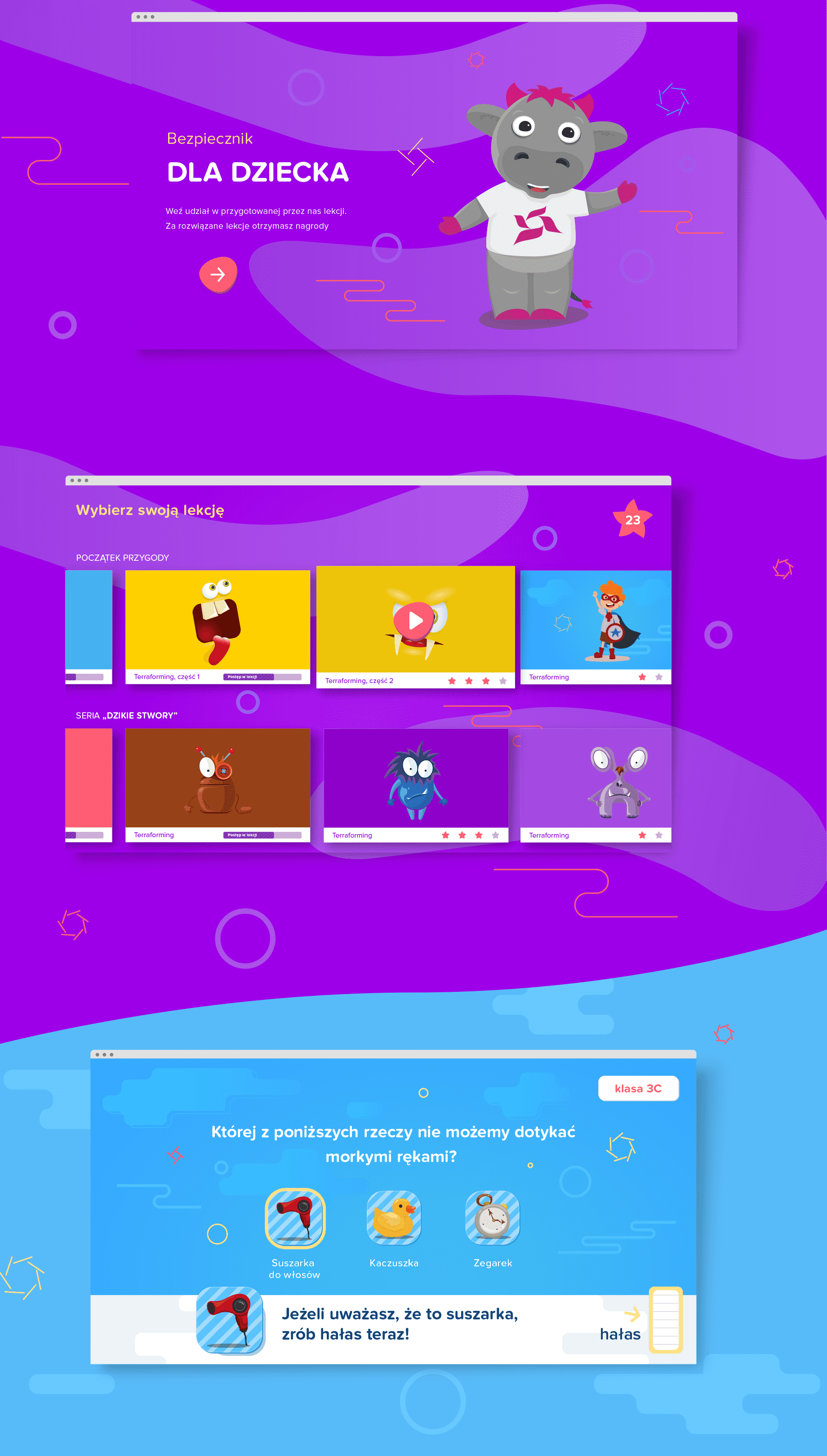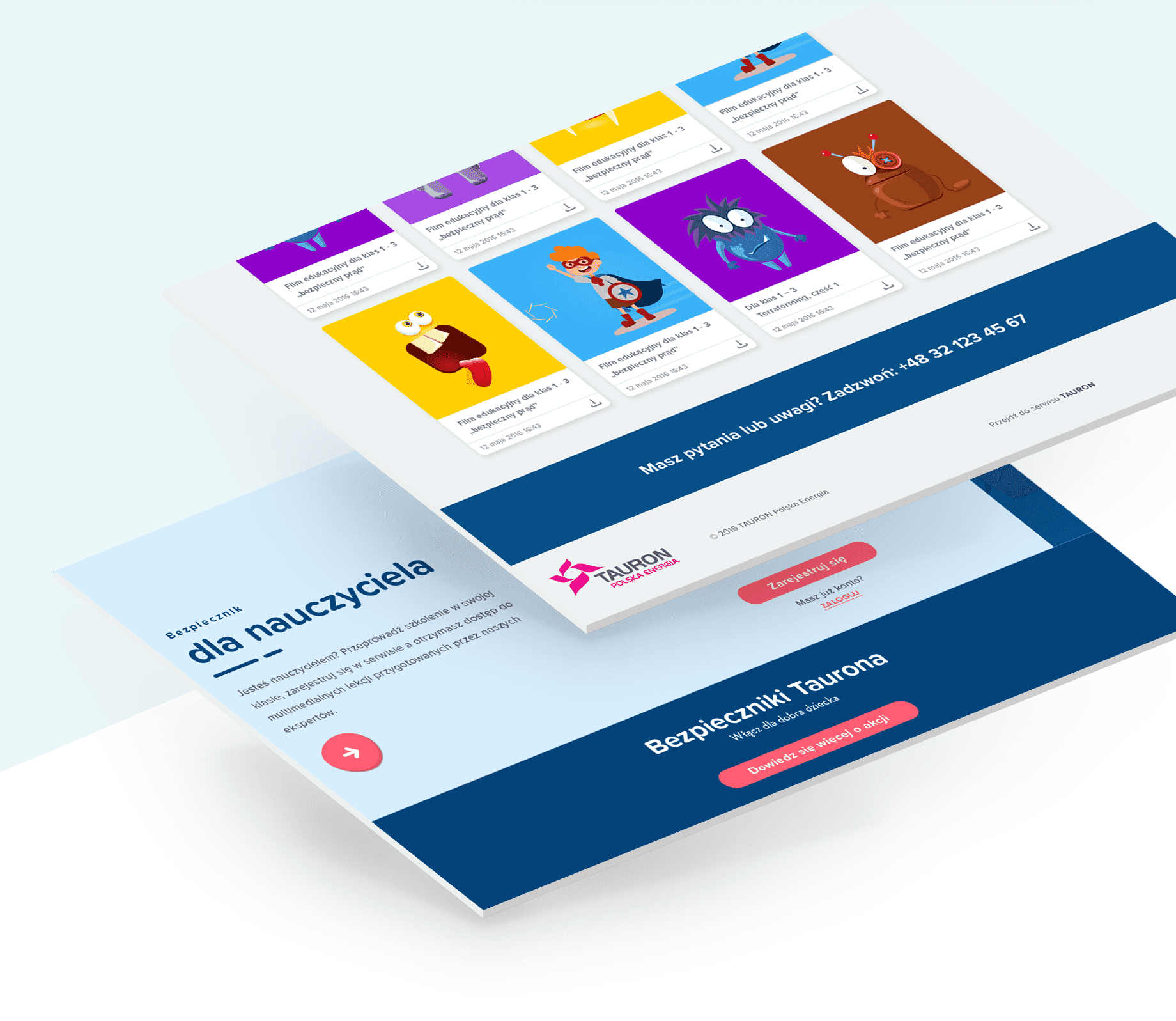 „Bezpieczniki TAURONA. Włącz dla dobra dziecka” to akcja edukacyjna prowadzona od 2013 roku dla klientów jednego z największych holdingów energetycznych w Europie Środkowo-Wschodniej, jakim jest Tauron Polska Energia S.A. Przygotowaliśmy koncepcję projektu platformy e-learningowej skierowanej do uczniów klas 1–3. Celem było zaangażowanie szkół oraz nauczycieli w prowadzenie lekcji dotyczących bezpiecznego korzystania z prądu.