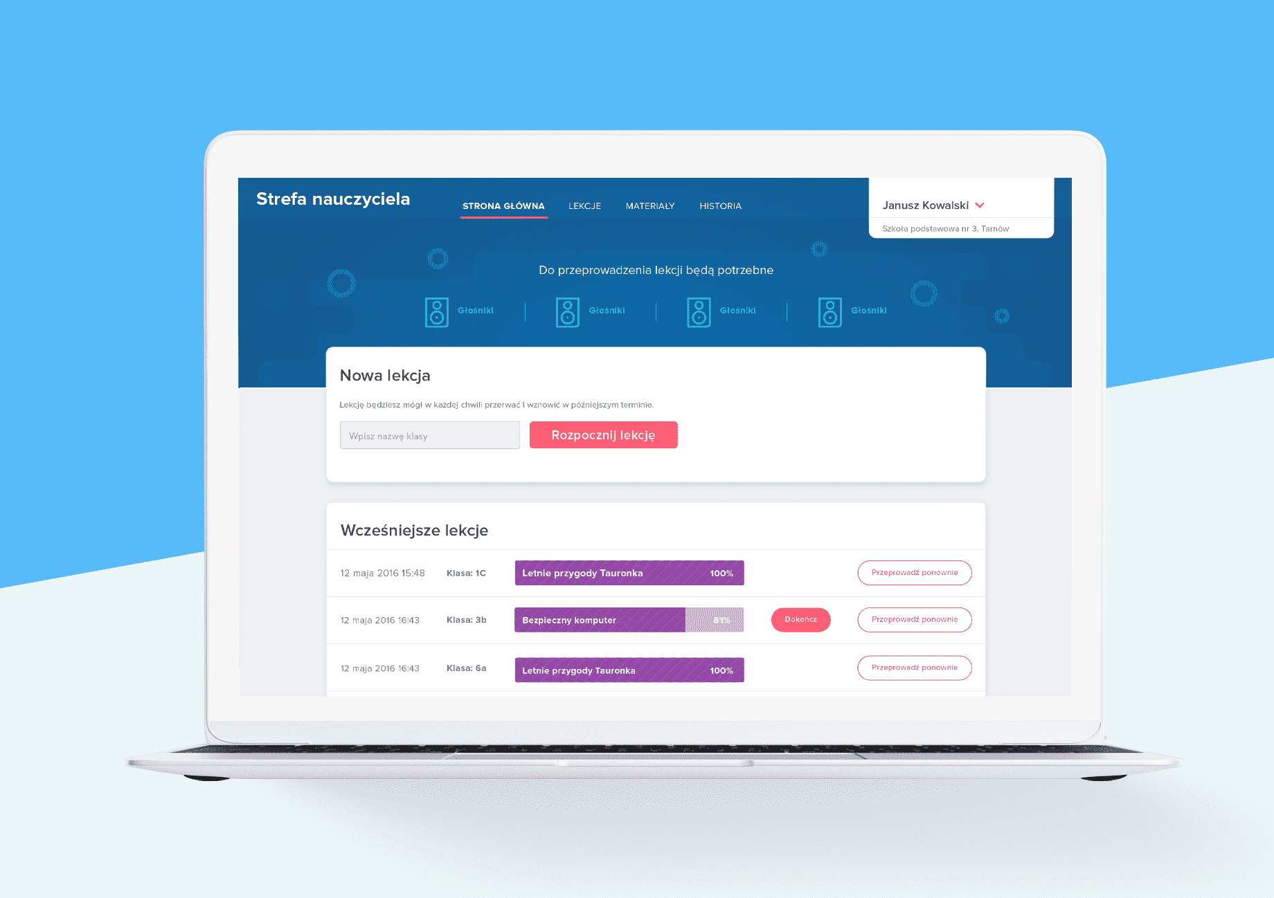 Mieliśmy dwie grupy docelowe, o odmiennych potrzebach. Uczniowie musieli otrzymać platformę inspirującą do nauki, angażującą, atrakcyjną wizualnie. To dla nich zmieniliśmy wygląd maskotki firmowej na bardziej otwartą, czytelną i wyrazistą. Dla nauczycieli najważniejsze były prostota i funkcjonalność.